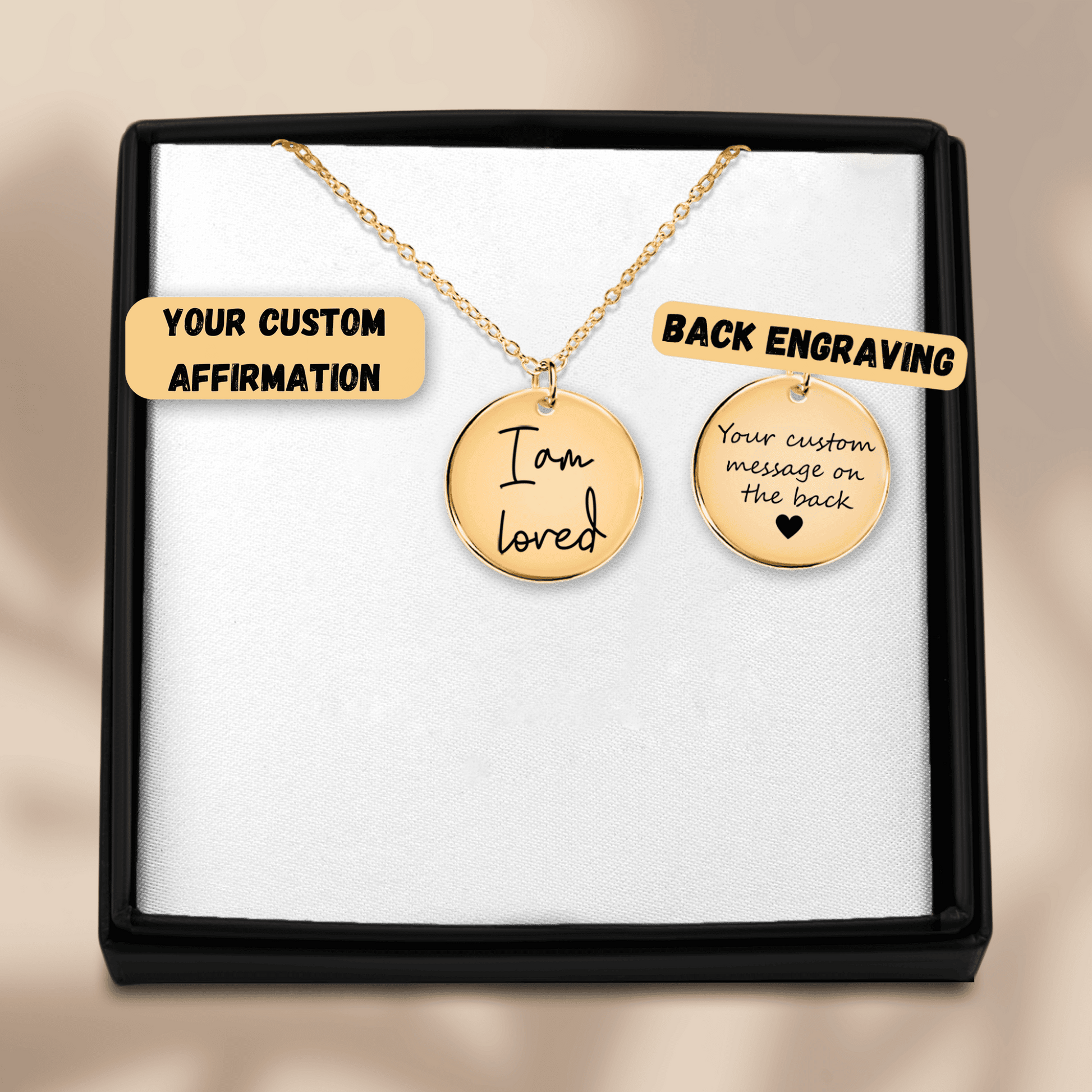 Carry a daily reminder of self-love and worthiness with this beautifully engraved "I Am Loved" necklace. A simple yet powerful affirmation, this piece serves as a gentle reminder of your inherent value and the love that surrounds you. Perfect for those looking to embrace positivity, this necklace is a meaningful addition to any jewelry collection.