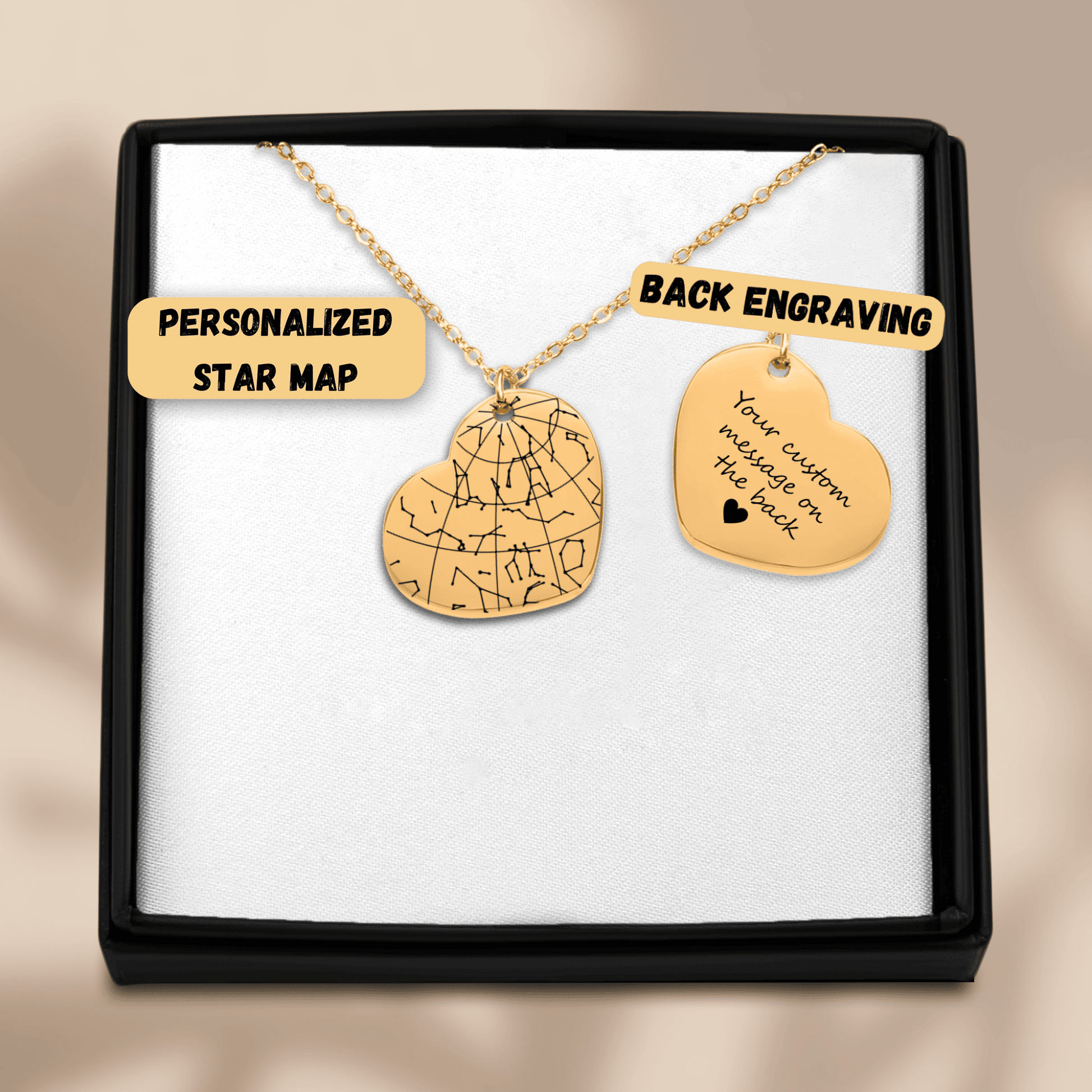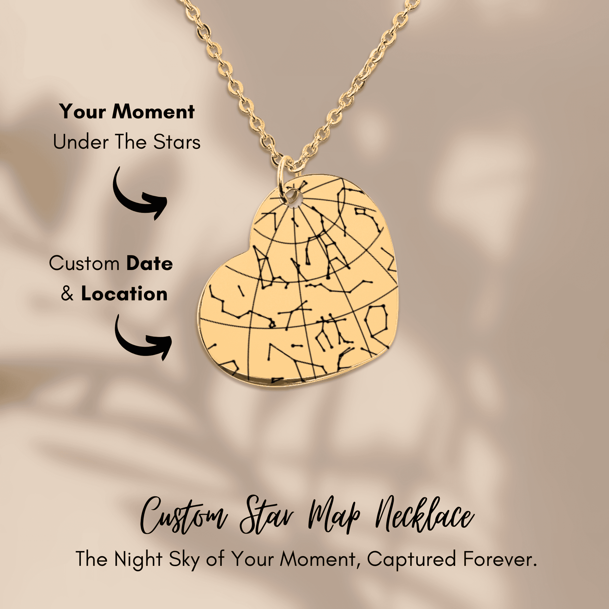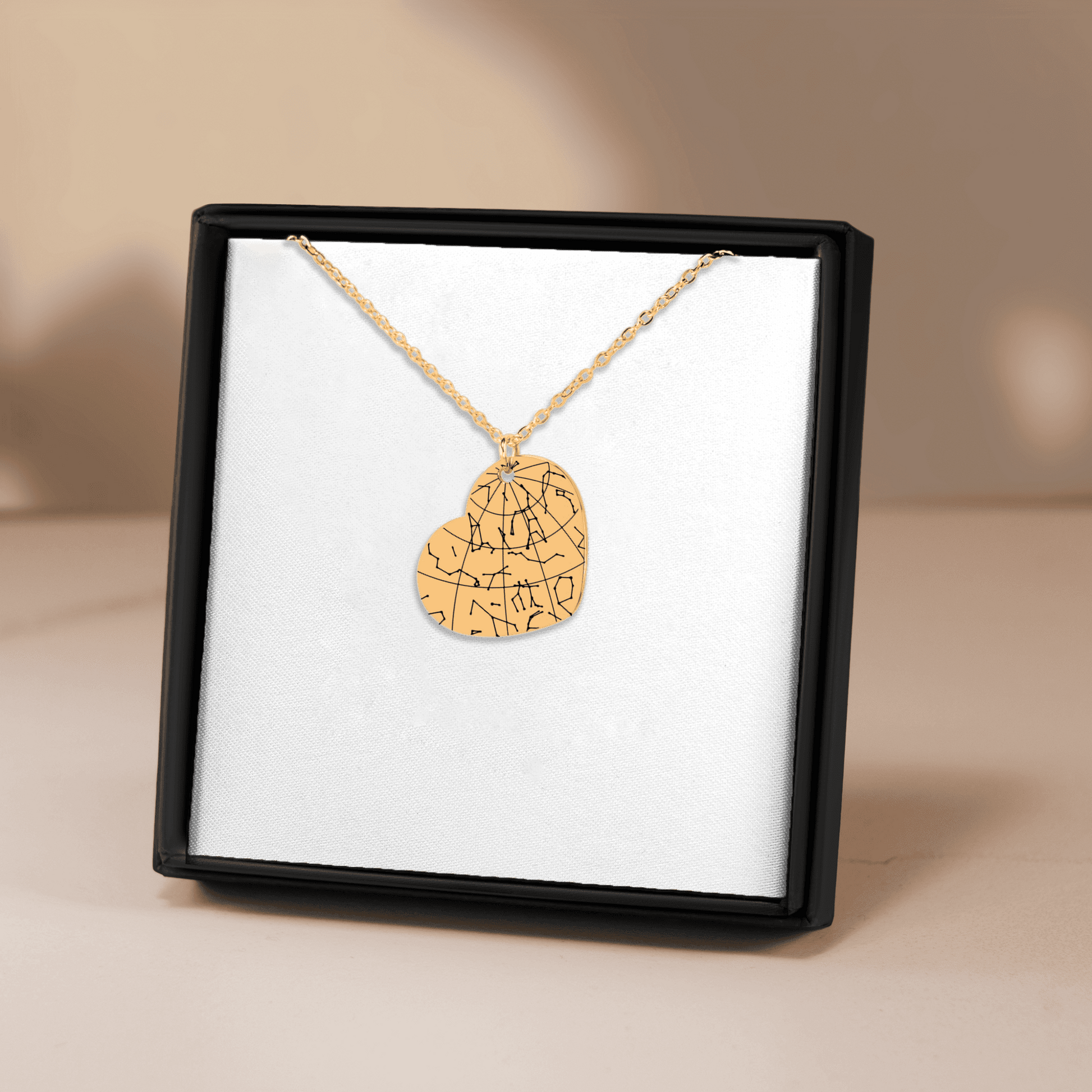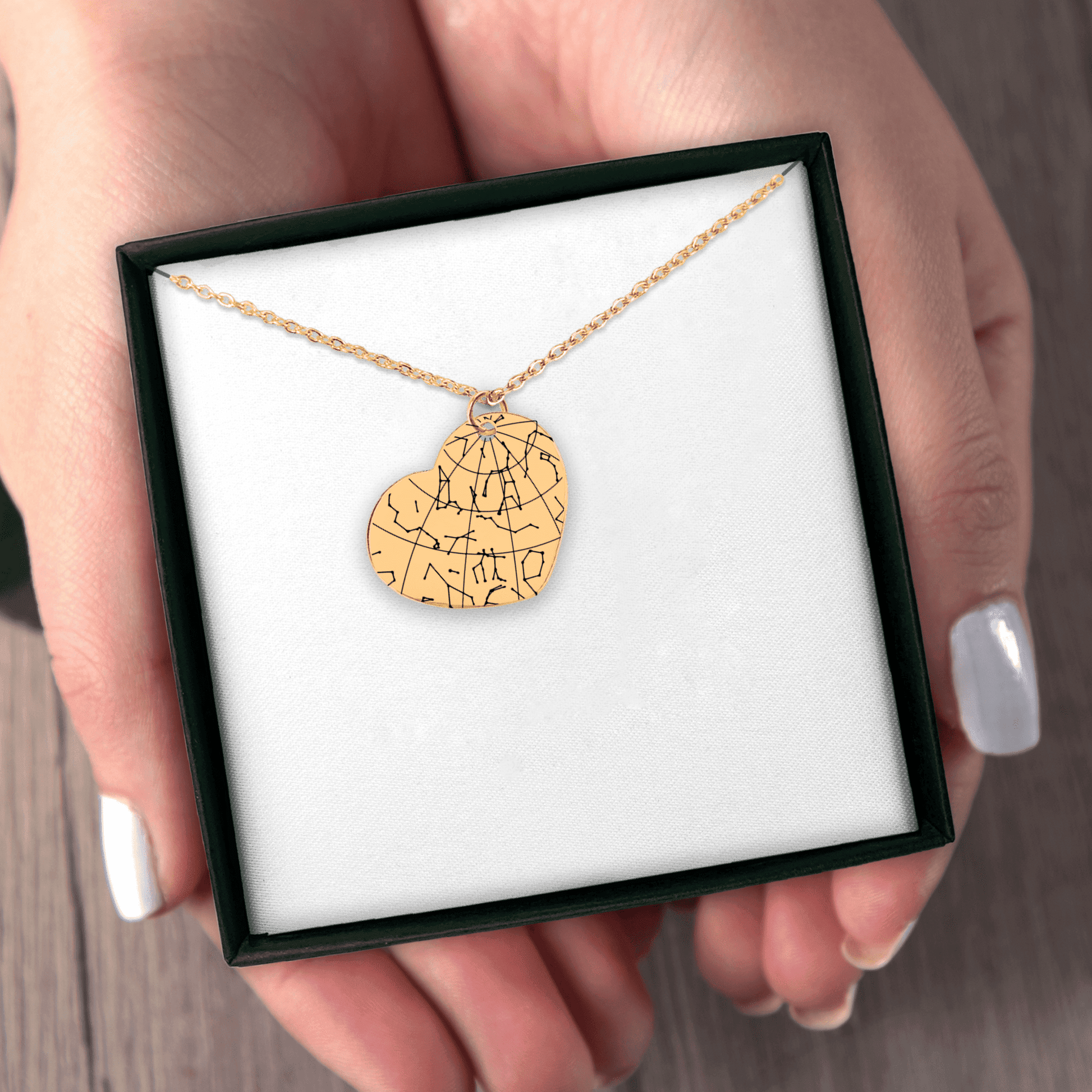 More than just a necklace… eternalize a special moment in your life with a custom star map necklace. Was it the day you met your soul-mate, the day you passed an important exam, the birth of a child, or the day you realized your world had changed? Simply add a date and a place, and our designers will customize a star map that shows exactly how the sky was looking on that specific day, from that specific place. Optionally, you can choose to give the necklace an even more personal touch by adding a custom message or coordinates on the back. This necklace also makes the perfect gift for anniversaries, birthdays, couples, and more.